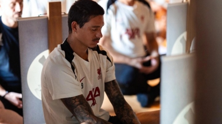 体育资讯07月28日讯 利物浦日本行造访东京的惠光院,在僧人指导下进行早晨冥想。