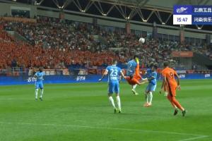 体育资讯06月26日讯 玉昆vs河南第16分钟,韩子龙尝试倒钩射门,正好蹭到头球解围的刘易鑫!刘易鑫接受治疗,韩子龙吃到黄牌一张。