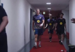 在场下,年仅18岁的中卫库巴西展现出了成熟的一面。他走出更衣室,在球员通道中等待替补的队友们经过,与他们一一击掌,互相鼓励,其中还有36岁的老将莱万和球队的工作人员。