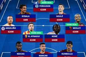 德转列罗马新赛季主力阵:总身价2.36亿欧元