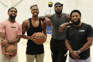 体育资讯7月29日讯 今日,著名训练师Chris Johnson更新Instagramn,晒出他指导詹姆斯和马克西完成训练后的合影。