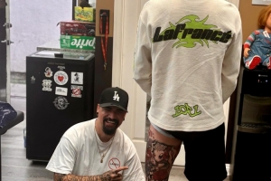 体育资讯7月29日讯 纹身师Gtatattoos晒出了和黄蜂球星拉梅洛-鲍尔的合照,并晒出了他为其完成的最新左腿纹身,据纹身师透露,他和多位合作伙伴合计花了两天才完成这次纹身。