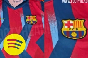 体育资讯7月29日讯 巴萨将在新赛季国家德比身穿特别版球衣出战,足球装备情报网站Footy Headlines也曝光了该款球衣设计。