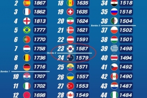 体育资讯7月29日讯 除了美加墨作为东道主自动确定为2026世界杯一档球队之外,其他参赛球队将根据FIFA排名来确定分档,而在争夺世界杯二档球队方面,韩国和澳大利亚竞争激烈,因为双方排名和积分非常接近。