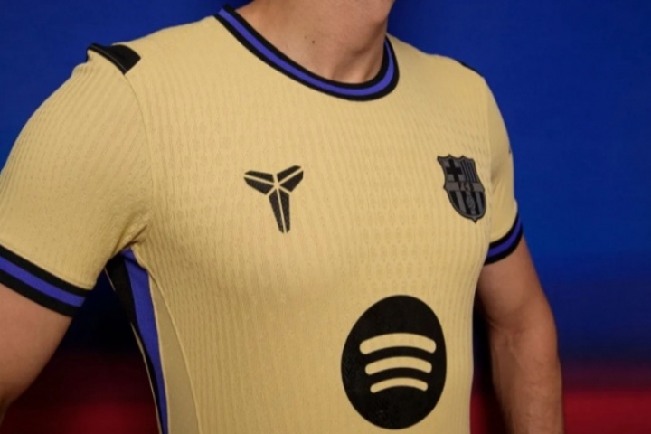 巴塞罗那足球俱乐部与耐克共同缔造球衣设计史上的革命性时刻——2025/26赛季第二客场战袍将首次以科比-布莱恩特个人品牌标志“Kobe Sheath”(剑鞘徽章)替代传统的耐克勾形标识。这次合作源于NBA传奇与巴萨在追求卓越体育精神上的高度共鸣,科比永不言弃的“曼巴精神”与巴萨"不只是一家俱乐部"的核心理念完美交融。