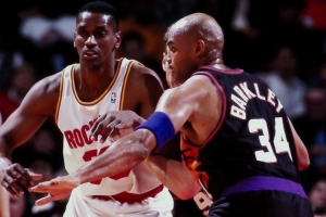 巴克利在太阳的第一个赛季拿到了生涯唯一一座MVP,他场均25.6分12.2篮板5.1助攻。