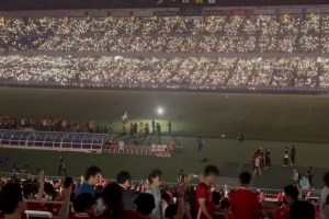 当体育场被红白灯光照亮时,利物浦传奇伊恩-拉什走上球场,献上鲜花,以纪念迪奥戈-若塔和安德烈-席尔瓦。