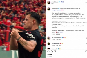 体育资讯7月30日讯 勒沃库森已经官宣32岁的中场扎卡转会桑德兰,后者也通过社媒发文告别: