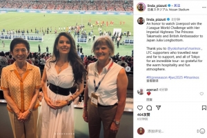 琳达写道:“荣幸与高圆宫妃久子殿下及英国驻日大使茱莉亚-朗博顿共同见证利物浦夺得J联赛世界挑战杯冠军。”