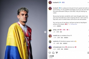 体育资讯7月31日讯 拜仁已经官宣从利物浦签下哥伦比亚边锋迪亚斯,后者也通过社媒晒出签约照并发文纪念: