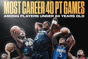 当今联盟24岁以下球员40+场次: