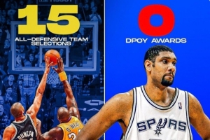 ClutchPoints表示:“一个又一个回合的防守,一年又一年的坚守,他就是马刺无需恐慌的原因。但他的伟大是无声的。而这种沉默可能让他付出了代价。当聚光灯追逐那些更张扬的防守者时,邓肯只是默默地比任何人都做得更好。然而投票者却一再忽视他😬。现在这也无法弥补了。没有追溯性的奖项。但历史有长久的记忆,篮球界记得谁才是真正的守护者。15次入选最佳防守阵容,5次总冠军,然而,他竟然从未获得过最佳防守球员奖。”