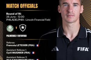 体育资讯6月27日讯 国际足联发布公告,宣布了帕尔梅拉斯vs博塔弗戈、本菲卡vs切尔西的裁判安排。