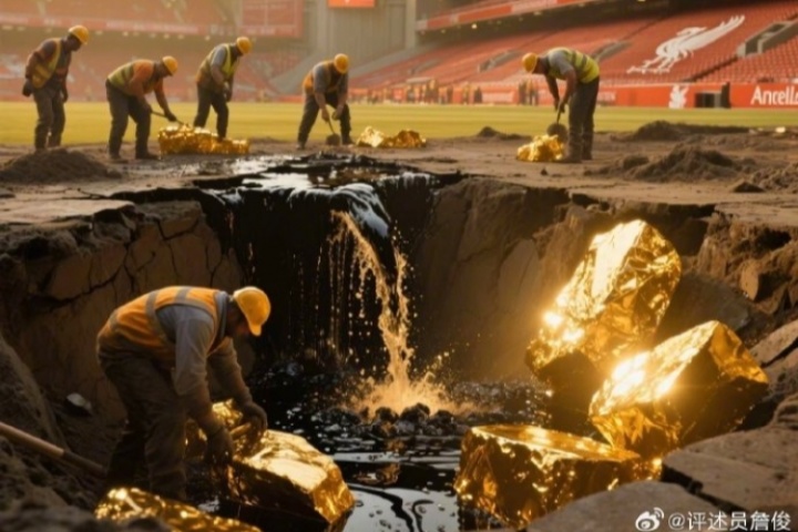 知名评述员詹俊对此评论道:“超过一亿英镑的首份报价被拒,红军球迷还得继续挖坑才行......”并晒出了一张AI生成的“利物浦球场下挖石油和金矿”配图。