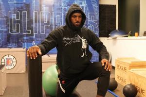 体育资讯8月2日讯 近日,詹姆斯晒出训练照,背后是快船的Logo。