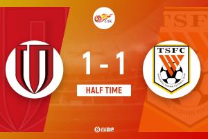 半场结束,成都蓉城暂1-1山东泰山。