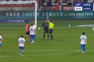 体育资讯08月02日讯 泰山vs蓉城第58分钟,王大雷出击到禁区外放倒费利佩,主裁判一开始判罚黄牌,VAR介入后,主裁判亲自看回放后改为红牌,将王大雷罚下!