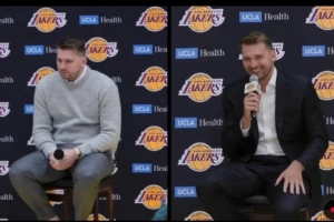 湖人自媒体Lakers Daily晒出了东契奇今天参加发布会和他首次参加湖人发布会时的对比照,并写道:“一个休赛期竟能带来如此大的变化!”