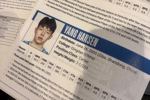 勇士官方今日给记者们主办了二轮选秀的观看派对,在勇士准备的资料中,有杨翰森的介绍。