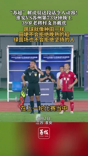 39岁的戴虎在上一轮比赛当中,为淮安队拿到首个客场三分,立下悍马功劳,左手分秧苗,右脚传希望,他以他的实际行动告诉我们,踢球就像种田一样,田埂不会拒绝晚熟的稻,而绿茵场也不会拒绝坚持的人。其实在这场比赛当中,我更想说的是,我们苏超给了每一位热爱足球的人追逐梦想的舞台。
