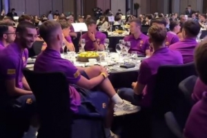 体育资讯8月3日讯 西媒《世界体育报》报道称,巴萨在首尔四季酒店举行了告别晚宴,前往亚洲巡回赛的三十名球员被分在三张十人餐桌,其中一张加入了主帅弗里克,成为第十一人。