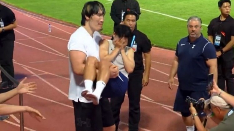 在昨日的媒体活动中,孙兴慜和韩国格斗明星崔洪万见面并进行了有趣的互动。身高约2.18米的崔洪万将孙兴慜用“公主抱”的方式抱起,而孙兴慜则害羞得捂住了脸。