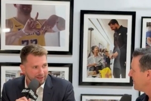 湖媒:当初续约浓眉时现场比较简单 东契奇这次特意搭建了照片墙