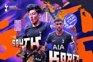 热刺官方社媒发布了为此役制作的海报,孙兴慜、罗梅罗、斯宾塞、贝里瓦尔出镜,海报上有“韩国”字样。