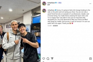 理查利森写道:Sonny,当你在球场上环顾四周却看不到你时,感觉会有些奇怪。你不仅是我非常好的朋友,也是我职业生涯中的榜样、领导者和一个真诚的人。你身穿热刺球衣创造了历史,我很高兴能与你一起赢得意义如此重大的冠军。你完全配得上这一切!愿你的未来充满快乐、健康和成功。和你做队友是我的荣幸!我相信我们的道路还会再次交汇。谢谢你!🥹❤️