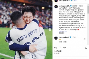 体育资讯8月4日讯 热刺队长孙兴慜确定离队,预计将前往美职联加盟洛杉矶FC。对于这样的球队传奇离开,热刺后卫波罗在社交媒体上进行了告别。