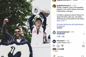 维卡里奥写道:孙兴慜是一个传奇。他是我们俱乐部历史上最伟大的球员之一,更重要的是,他是个顶级的好友。