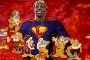 波洛在Instagram中分享了一张照片,照片中不仅有亚马尔身穿超人服装的形象,还出现了白雪公主故事中的七个小矮人,显然是对球员在生日派对上雇佣侏儒表演一事的讽刺。