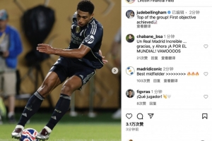 贝林厄姆社媒写道:小组头名出线,球队完成第一个目标📈
