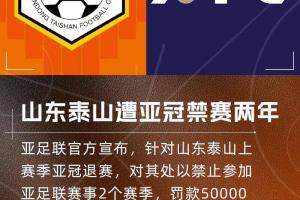 体育资讯08月04日讯 亚足联官方消息,山东泰山俱乐部因上赛季的亚冠退赛,受到处罚。