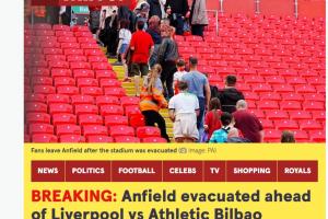 利物浦与毕尔巴鄂竞技队的友谊赛将于0点开赛,球迷们开始入场时警报响起,随后球迷被要求撤离。目前,撤离原因尚不清楚。