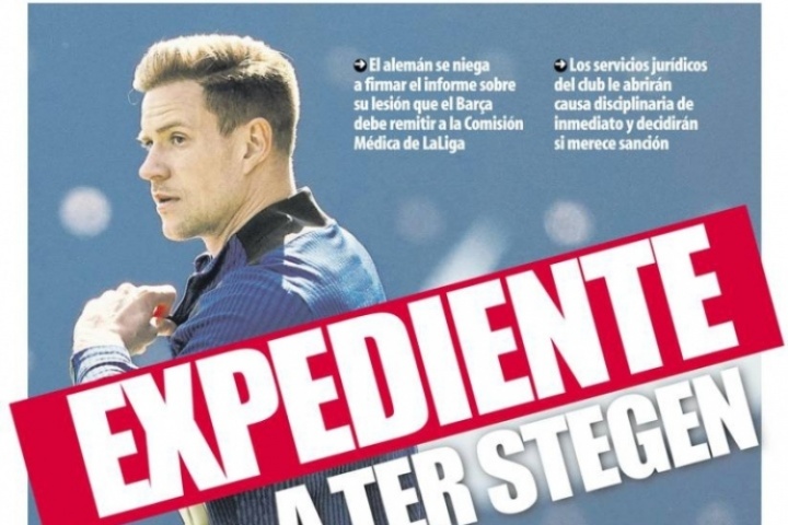 体育资讯08月05日讯 据《世界体育报》今日头版消息,由于特尔施特根拒绝授权俱乐部将医疗报告提交至西甲,巴萨准备对其启动纪律处分决定。