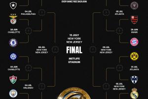 体育资讯06月27日讯 2025世俱杯16强全部出炉,曼城成为头号热门,身后是巴黎和皇马。