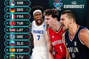 体育资讯8月5日讯 今天,男篮欧锦赛官推公布了新一期的实力榜,塞尔维亚、德国和法国前三。