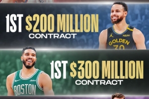 2024年,塔图姆夺冠后5年3.13以续约绿军,成为首个三亿先生;