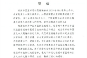 6月26日,我俱乐部球员杨瀚森在2025年NBA选秀大会首轮第16顺位被波特兰开拓者队选中,这一里程碑时刻不仅属于杨瀚森个人,更凝聚了无数人的支持与期待!在此,俱乐部向发来贺信的主管单位、联赛伙伴以及长期关注我们的球迷朋友、媒体朋友致以最诚挚的感谢!