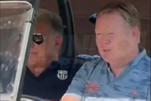 体育资讯6月27日讯 《世界体育报》晒出视频,巴萨主席拉波尔塔与前主帅科曼一起打高尔夫。