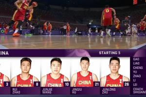 中国男篮首发:朱俊龙、王俊杰、胡金秋、胡明轩、赵睿。