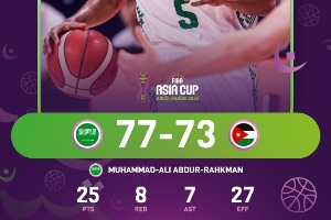 体育资讯08月08日讯 在昨天凌晨结束的一场亚洲杯比赛中,东道主沙特阿拉伯77-73力克约旦。