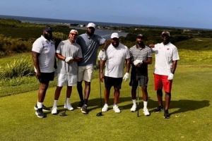McGee晒出一组他和其他几位好友与詹姆斯一同打高尔夫的照片。
