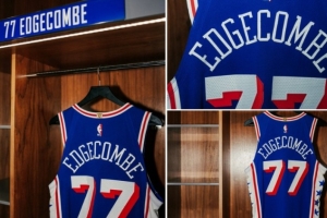 今天,76人官方晒出了埃奇库姆的球衣,他将身穿77号。