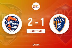 半场战罢,海牛暂2-1玉昆。