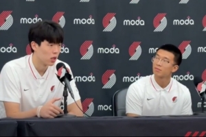 体育资讯6月28日讯 今日,开拓者为杨瀚森举行新闻发布会。