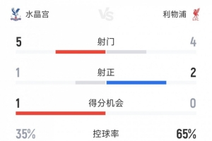 体育资讯8月10日讯 社区盾杯决赛上半场结束,利物浦暂时凭借新援埃基蒂克以及弗林蓬的进球2-1领先水晶宫,以下是双方半场数据对比: