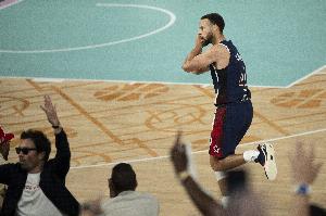那场比赛最后时刻成为库里的个人表演时间,最后法国一度迫近到3分分差,库里连进4个三分,杀死比赛悬念,送全场晚安!