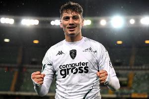 现年23岁的意大利前锋S-埃斯波西托,去年夏天从国米租借至恩波利。上赛季代表恩波利在各项赛事出场33次,打进8球。S-埃斯波西托与俱乐部的合同明年夏天到期,目前球员德转身价850万欧元。